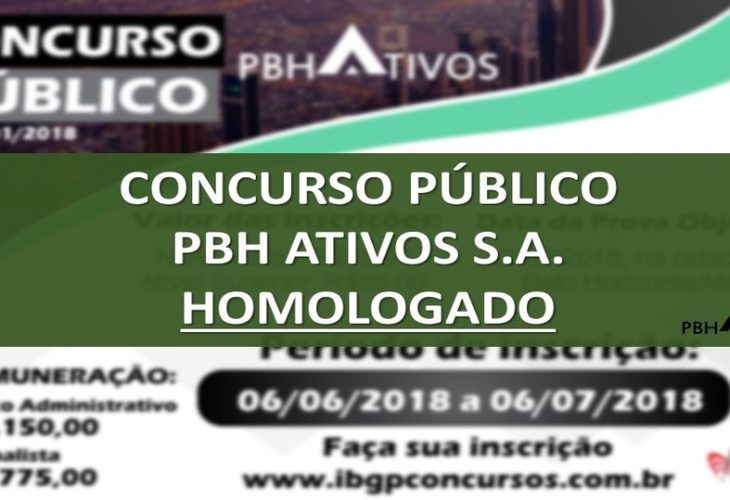 O Diretor-Presidente da PBH ATIVOS S.A., Pedro Meneguetti, no uso de suas atribuições legais, HOMOLOGA o resultado final do Concurso Público de Provas, para provimento de cargos do quadro de pessoal da PBH ATIVOS S.A…